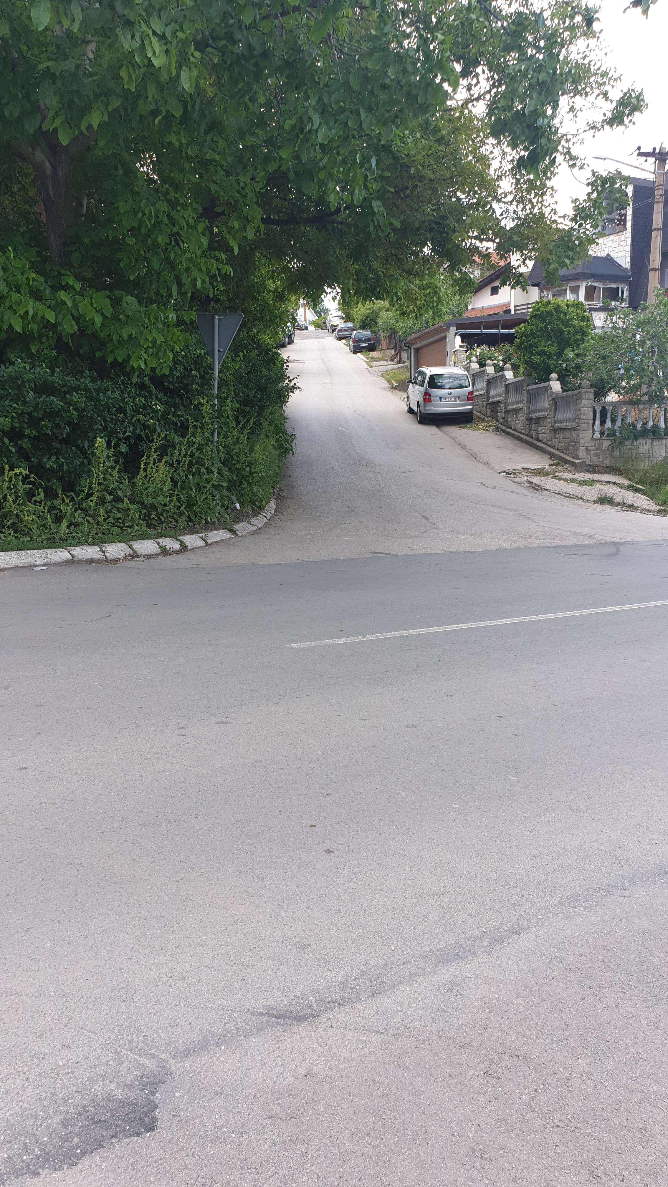 Raskrsnica koja je zbog svoje geometrije nepregledna, potrebno je saobraćajno ogledalo |